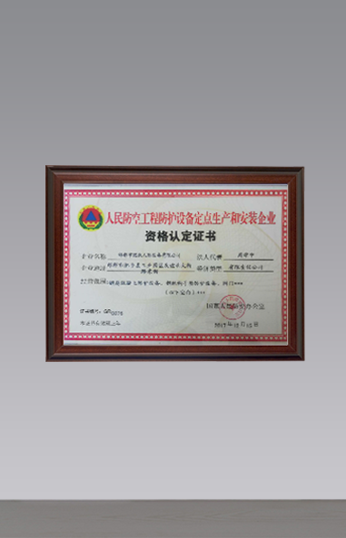 2017通過IS9100質量管理認證體系;獲得人民防空工程定點生產按照資質。